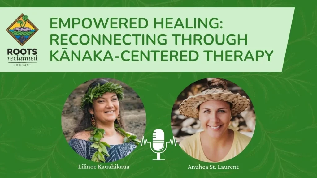 In this episode of Roots Reclaimed, project manager Lilinoe Kauahikaua sits down with Native Hawaiian Licensed Marriage and Family Therapist Anuhea St. Laurent, who is also the founder of the company Kanaka to Kanaka. They talk about the importance of reclaiming cultural identity and reconnecting to one’s roots through culturally aligned therapy, which starts by finding a therapist who understands one’s worldview, values, and offers a sense of comfort and familiarity. Lilinoe and Anuhea also discuss the growing need for more Native Hawaiian therapists, challenges around stigma in seeking support, and how cultural reconnection can help empower people in their healing journey. Anuhea reflects on her own experience navigating her identity while learning Western behavioral health practices and how she integrates both worlds in her work today